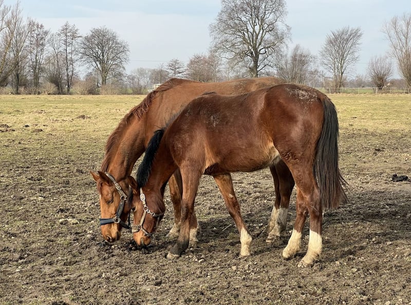 Na sprzedaż dwa konie – matka i córka. • Córka – 2-letnia, z bardzo dobrym rodowodem i dużym potencjałem sportowym na przyszłość. • Matka – również z bardzo dobrym rodowodem, w przeszłości startowała w klasach P i N. Obecnie po przebytym zabiegu, w trakcie powrotu do pełnej sprawności – rozpoczęła już skoki. Dostępne filmy z zawodów do wglądu. Więcej informacji pod numerem telefonu.