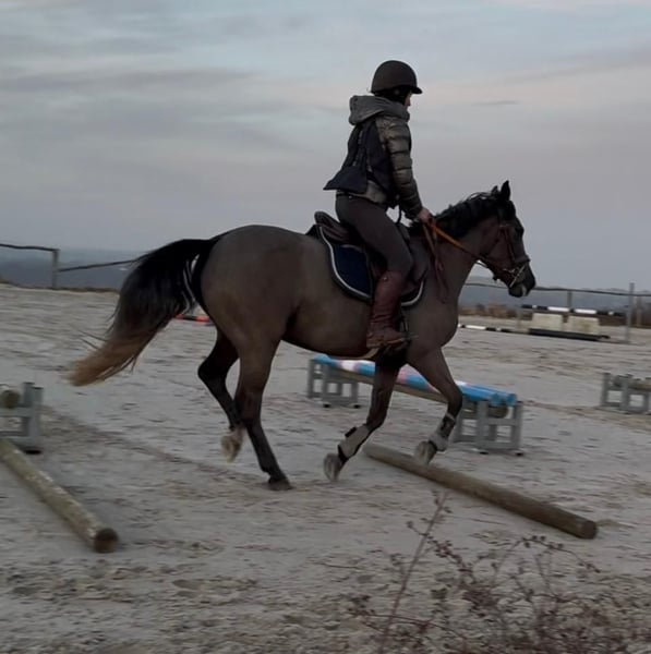 Adorable ponette taille D, (145 cm) âgée de 5 ans. Polyvalente, très brave et dotée d’un excellent mental, elle convient parfaitement pour une famille ou un jeune cavalier encadré. Paka se distingue par son intelligence, sa bonne volonté et son envie permanente de bien faire. Elle apprend vite et se montre toujours à l’écoute de son cavalier. - En dressage, les bases sont largement acquises. - En obstacle, elle saute un petit parcours sur 60 cm actuellement. Magnifique sauts en liberté . Top technique , montre des moyens pour faire 1m/110 au moins à terme . - En cross, vu son mental, cela sera une formalité. ( sera testée dès qu'il sera possible de retourner sur les terrains ) - En balade, c'est un vrai bonheur, elle part seule ou accompagnée sans stress. Au quotidien, elle est extrêmement facile : • soins sans difficulté (pansage, douche, maréchal, tonte, véto, ...) • se transporte facilement • gentille et respectueuse à pied Une ponette attachante, proche de l’humain, qui adore qu’on s’occupe d’elle. Idéale pour évoluer tranquillement dans le travail tout en se faisant plaisir. En ordre de tout : Visite véto dispo + radios OK . Dents faites , vermifugée, vaccinée . 📍 Visible en Belgique, du côté de Liège . 📩 Infos et vidéos sur demande par whatsapp : 0032479481088