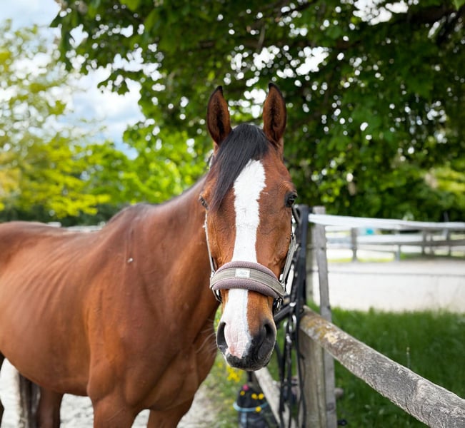 The beautiful 10-year-old gelding (Irish Sport Horse, 168 cm tall) found his way to us in the Tyrolean mountains in July 2024. Due to personal circumstances, his previous owners could no longer care for him. Now Buddy is eagerly waiting at the horse shelter to find his very own special person. Buddy is a soul of a horse! – Extremely people-oriented and very well-mannered in handling. With his curious and eager-to-learn nature, he loves to discover new things and likes to show off his clever little head. However, Buddy is not a beginner's horse and definitely wishes for a sensitive and experienced horse person by his side, someone who will explore the world with him and continue to support and challenge him. About three years ago, he was diagnosed with a suspensory ligament injury. Occasionally, a slight residual lameness is still noticeable, but otherwise, he enjoys excellent health. Buddy is also very uncomplicated and sociable with other horses and wishes for a herd with many friends in his new home, with whom he can play and romp around freely. Buddy is fully vaccinated and microchipped. He wishes for an open stable or a night box with daily turnout in his new home.