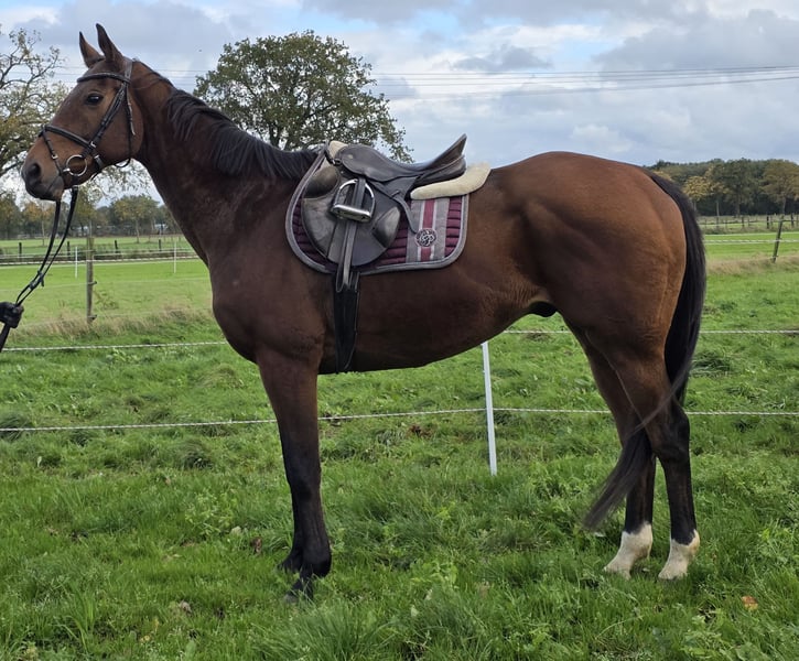 Chief es un caballo irlandés de aproximadamente 1,65 m de altura, un verdadero versátil que se adapta a todas las disciplinas ecuestres. Este joven caballero cuenta con excelentes movimientos, además de ser muy sensible a la presión de las riendas y disfrutar mucho del trabajo diario. Procedente de su país de origen, está familiarizado con la doma en campo y también con saltar obstáculos sólidos. Es un caballo ideal para concurso completo. Ya dispone de un examen veterinario reciente. Para más información, estaremos encantados de recibir correos electrónicos, mensajes de WhatsApp o, aún mejor, llamar directamente al 0177/2721831.