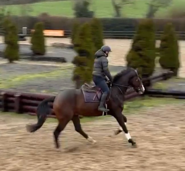 Giovane castrone di 4 anni, robusto, con alta componente di sangue da purosangue, altezza circa 1,72 m. A causa della sua crescita, viene addestrato con delicatezza e ha ancora bisogno di tempo per maturare. Conosce già i salti in campagna e si adatta sicuramente bene come cavallo da caccia. Per permettergli di crescere e maturare, dall'inizio di novembre è al pascolo e, per questo motivo, viene venduto attualmente solo direttamente dal pascolo. Per questo il prezzo è conveniente. Il trasporto dall'Irlanda deve essere organizzato autonomamente. Si prega di contattare solo tramite WhatsApp al +49 173 5858104.
