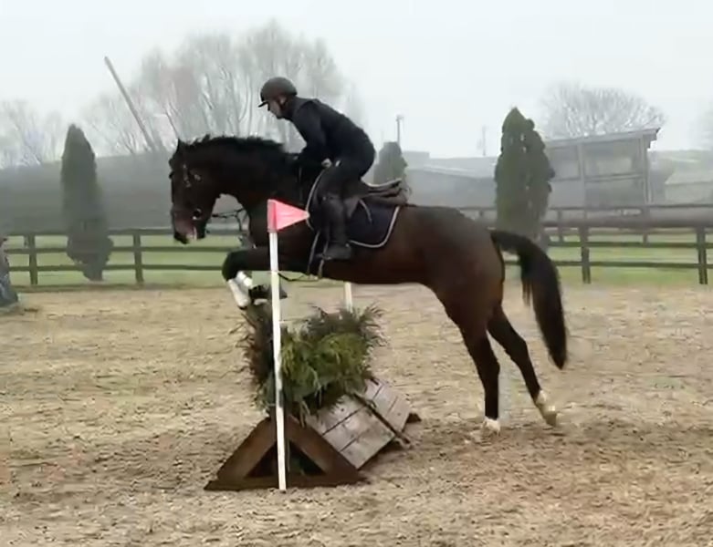 Large-framed 4-year-old gelding with a high Thoroughbred percentage, approximately 16.9 hh. Due to his growth, he is being gently backed and still needs time to mature. He is already familiar with cross-country jumps and would likely make a good hunting horse. To allow him to continue growing and maturing, he has been on pasture since early November and is currently only available for direct sale from the field. That is why the price is so favorable. Transport from Ireland must be arranged independently. Please contact only via WhatsApp at +49 173 5858104.