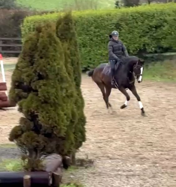 4 year old blood marked gelding who is still in full development. He is approx. 8 weeks under saddle and already knows small cross-country jumps. A great young horse to train yourself. Only for sale to experienced riders due to his age.