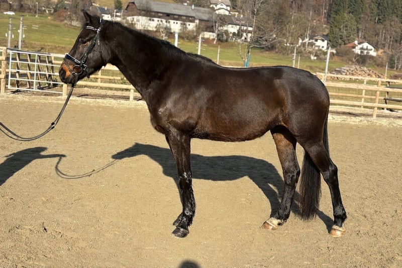 Zum Verkauf steht ein vielversprechender Irish Sport Horse Wallach, geboren 2021, in einer edlen dunkelbraunen Jacke. Er ist korrekt gebaut, verfügt über ein gutes Fundament und ist artgerecht aufgewachsen. Ausbildung & Rittigkeit Der Wallach wurde schonend angeritten und wird aktuell weiter gefördert sowie gezielt auf die Turniersaison 2026 vorbereitet. - altersentsprechend dressurmäßig ausgebildet - meistert bereits erste Sprünge - nicht guckig, ehrlich und aufmerksam - schöner Bergauf-Galopp - angenehmes Go und sehr gute Rittigkeit Abstammung Der Wallach stammt aus einer hochwertigen, leistungsgeprägten Springabstammung: Vater: Cornet Obelensky – einer der bedeutendsten Springvererber weltweit, bekannt für Vermögen, Technik, Schnelligkeit und Leistungsbereitschaft. Zahlreiche Nachkommen sind international bis auf höchstem Niveau erfolgreich. Mutterlinie: Der Vater der Mutter war ein im irischen Springsport hoch erfolgreiches Connemara-Pony, das für Härte, Intelligenz, Mut, Übersicht und Rittigkeit steht. Diese Kombination vereint modernes Springpferdeblut mit bewährter irischer Leistungszucht und bietet beste Voraussetzungen für ein ehrliches, leistungsstarkes Nachwuchsspringpferd. Charakter & Umgang - sehr brav, freundlich und unkompliziert - stets artig unter dem Sattel - keine Unarten - brav beim Schmied und Verladen Gesundheit & Herkunft - direkt vom Züchter - klinische AKU ohne Befund vorhanden - keine Vorerkrankungen oder Einschränkungen - regelmäßig geimpft und entwurmt Einsatzmöglichkeiten Ein ideales Pferd für: - Turnierpferd mit Perspektive im Springsport - Ponyumsteigerpferd - Mädchenpferd - ambitionierte Nachwuchsreiter - auch als gehobenes Freizeitpferd bestens geeignet Preis & Sonstiges - Preis der Qualität entsprechend – steigt bei weiterer Ausbildung - Zubehör kann gegen Aufpreis komplett mitgegeben werden - Besichtigung und Probereiten jederzeit nach Absprache möglich Wir freuen uns über eine Kontaktaufnahme. Videos werden gerne auf Anfrage versendet.