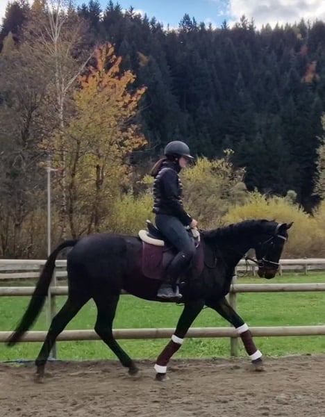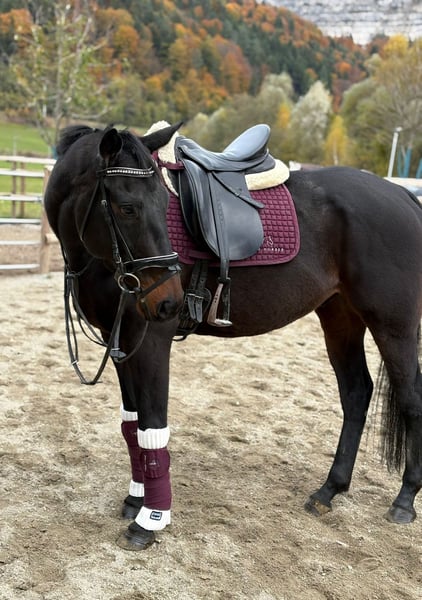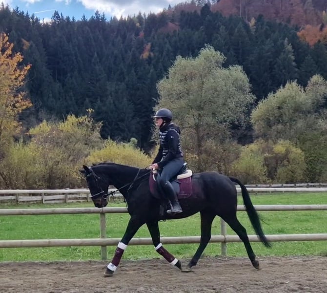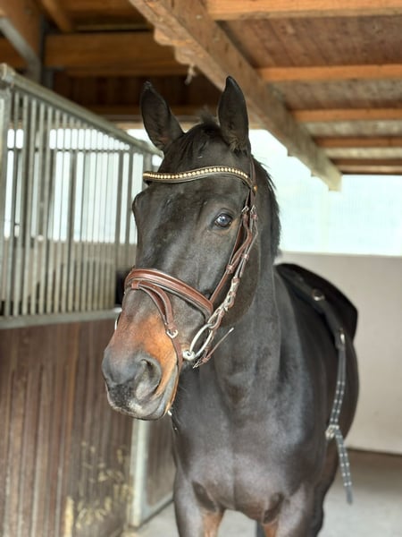 Name: Archie Geschlecht: Wallach Geboren: 2020 in Irland Stockmaß: ca. 160 cm Typ: im Vollblut-Typ stehend Archie ist ein bildschöner, edler Rappe mit tollem Ausdruck und einem absolut liebenswerten Charakter. Er zeigt sich stets aufmerksam, aber nicht schreckhaft, und überzeugt mit seiner ausgeglichenen, menschenbezogenen Art. Auch für schwächere oder weniger erfahrene Reiter ist er ein angenehmer und verlässlicher Partner. Im Dressurtraining befindet sich Archie auf einem schönen A-Niveau und besticht durch leichte Rittigkeit und harmonische Bewegungsabläufe. Mit weiterer Förderung ist er sicher auch für den Amateursport bestens geeignet. Er ist vielseitig veranlagt, brav im Gelände und hat bereits an Jagdritten in Irland teilgenommen – stets gelassen und motiviert. Archie ist gesund, barhuf, hat keine Unarten und wird nur in beste Hände abgegeben. Komplettes Zubehör kann bei Interesse gegen Aufpreis miterworben werden. Ein Besichtigungstermin kann gerne jederzeit nach Absprache stattfinden und ein Transport kann organisiert werden!