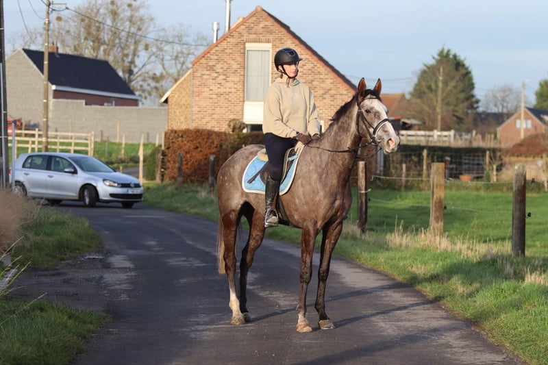 Edin – sportlicher, schicker Schimmel-Wallach, 4 Jahre alt (ca. 1,65 m) Edin ist ein schöner, sportlicher Schimmel-Wallach, 4 Jahre alt, mit einer Stockmaß von etwa 1,65 m. Er ist ruhig und lieb im Umgang und lässt sich brav auftrensen, bürsten und pflegen. Unter dem Sattel ist Edin einfach und angenehm zu reiten, mit einer sportlichen Einstellung. Er springt mühelos eine Parcourshöhe von 70–80 cm und ist weder schreckhaft noch ängstlich. Deshalb ist er sowohl für einen ambitionierten Reiter als auch für jemanden geeignet, der ein zuverlässiges, angenehmes Pferd zur weiteren Ausbildung sucht. Edin ist ein attraktives Erscheinungsbild, korrekt gebaut und alles an seinem Platz. Zudem ist er leicht zu transportieren. 📞 Für weitere Infos? 0032 475 68 22 43 🎥 Videos sind verfügbar – fragen Sie gern unsere Website an.