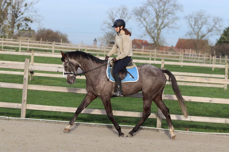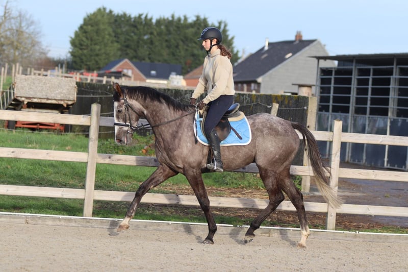 Edin – splendido puledro grigio sportivo di 4 anni (circa 1,65 m) Edin è un bellissimo puledro grigio sportivo di 4 anni, con un'altezza al garrese di circa 1,65 m. È tranquillo e dolce nel rapporto con le persone, si lascia cavalcare, spazzolare e curare con facilità. Sotto la sella, Edin è semplice e piacevole da cavalcare, con un atteggiamento sportivo. Supera facilmente un percorso di 70–80 cm e non è spaventato né timoroso. Per questo motivo, è adatto sia a un cavaliere ambizioso sia a chi cerca un cavallo affidabile e piacevole per un percorso di formazione. Edin è una presenza elegante, con una struttura corretta e proporzionata, con tutte le parti al loro posto. Inoltre, si trasporta facilmente. 📞 Per ulteriori informazioni? 0032 475 68 22 43 🎥 Sono disponibili video – chiedi pure sul nostro sito.