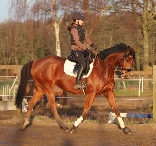 Belief ist ein 6 Jahre alter sehr braver und Menschenbezogener Wallach , belief besitzt keine Unarten ist brav und ehrlich im Umgang . er steht zur zeit auf teilbeschlag kann aber auch ohne eisen , aktuell lebt er in einer gemischten Herde im Offenstall kennt aber auch die Boxenhaltung . Aktuell hat Belief ein Stockmaß von 164 cm . Reiterlich gesehen ist er auf ein guten E Niveau geht sehr gerne ins Gelände dabei wirkt er sehr brav und unerschrocken auch wurde er schon mit kleinen Hindernissen vertraut gemacht alles in einen ein tolles Freizeit und Familienpferd .