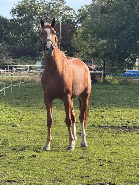 Aus Zeitgründen (Studium) und Bestandsreduzierung verkaufen wir schweren Herzens unseren 8 jäh. irischen Fuchswallach mit einem Stockmaß von 1, 72m. Dobby hat einen lieben Charakter, zeigt sich im täglichen Umgang unkompliziert, liebt es betüddelt zu werden und genießt die volle Aufmerksamkeit. Er ist brav beim reiten, kennt Halle Aussenplatz und Gelände, überzeugt durch seine Lernbereitschaft und nimmt neue Aufgaben motiviert an. Dobby wäre ein tolles Freizeitpferd für jemanden, der die Abwechslung liebt, egal ob Dressur, Springen, Gelände oder Bodenarbeit. Er ist geimpft und die Zähne wurden Anfang März gemacht. Aus Zeitgründen ist er aktuell nicht voll im Training, kann aber trotzdem Probe geritten werden. Wir wünschen uns für ihn eine tolles Zuhause mit täglichem Weidegang. Bei Interesse können Sie sich gerne per WhatsApp melden. Platz vor Preis