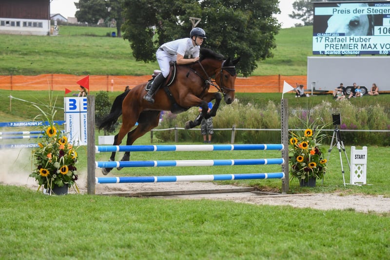 Max est malgré sa taille de 1,75 m compact et réactif aux aides. Il a des classements jusqu'à 115 cm et s'approche actuellement des premières épreuves de 120/125 cm. Il a définitivement du potentiel pour plus, mais conviendrait également parfaitement à un amateur. Il prend également plaisir aux obstacles naturels, ce qui permet de l'utiliser sans problème pour des épreuves combinées. Dans le quotidien, il est sage, le chargement, le maréchal-ferrant et les sorties en extérieur ne posent aucun problème.