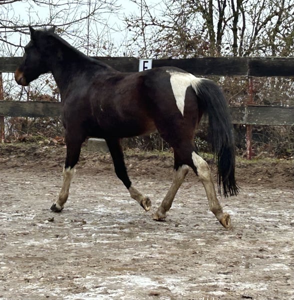Verkaufe Irish Sport Horse Wallach – Perfekter Partner für Wanderritte! Zum Verkauf steht ein wunderschöner Irish Sport Horse Wallach, geboren im Jahr 2016. Dieser schicke Schecke überzeugt durch sein freundliches Wesen und sein fleißiges Vorwärts. Mit einem Stockmaß von 155 cm ist er ideal für den Jugendliche und Erwachsene geeignet und zeigt sich stets motiviert und zuverlässig im Gelände , Platzarbeit kennt er nicht sonderlich. Er ist aufmerksam, lernwillig und hat ein angenehmes Temperament, das sowohl erfahrenen Reitern als auch ambitionierten Einsteigern Freude bereitet. Er hat eine kleine Verdickung am Vorderbein, die nie Probleme bereitet hat, ist brav beim Schmied und Fahren. Günstig, da wir den Platz benötigen und er für den Reitunterricht nicht geeignet ist aufgrund wechselnder Reiter. Da springt er bei Stress in den Pass, was sonst kein Problem ist. Gern mit Zubehör zum Aufpreis, wenn gewünscht! Gern per WhatsApp melden!