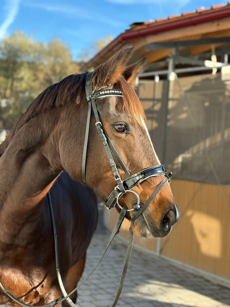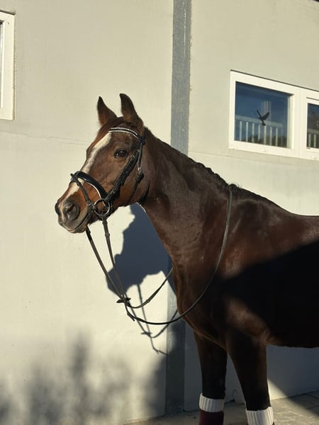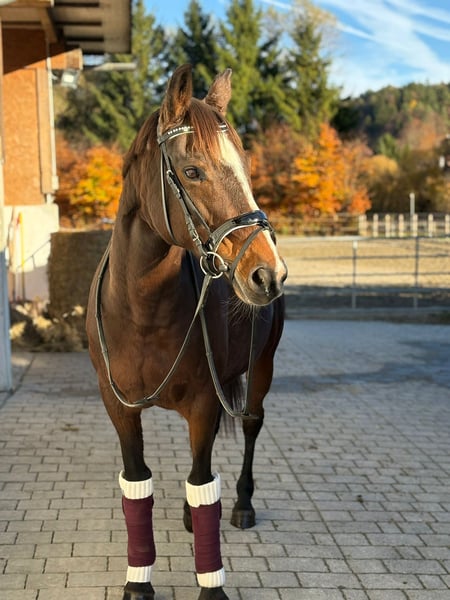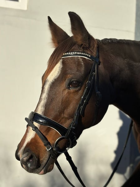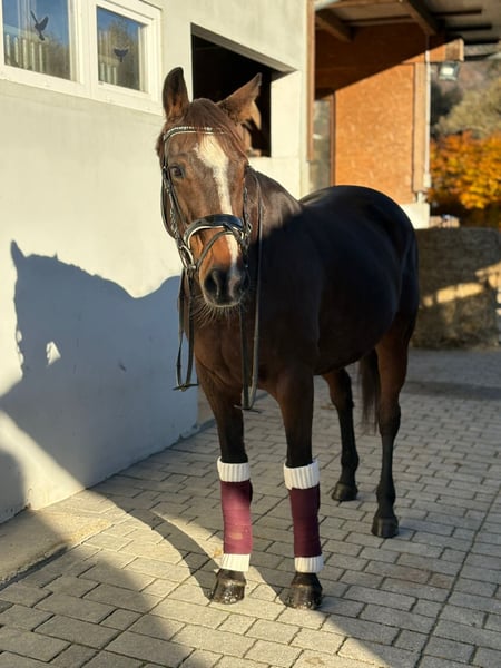 ✨ Dream Mare – Irish Sport Horse, Well-Ridden & Beautiful ✨ Breed: Irish Sport Horse Gender: Mare Born: 2016 Height: approximately 16.0 hh Color: Dark Brown with a charming blaze Milli is a stunning, rideable mare that immediately captivates with her harmonious conformation and lovable nature. She excels in dressage at a very good novice level, responds delicately to aids, and offers soft, comfortable gaits that make every ride a pleasure. She is easy to ride, always attentive, motivated, and has plenty of go – a true dream horse for experienced riders who enjoy fine riding. In addition to dressage, she enjoys going over poles and is extremely well-behaved, brave, and reliable in the field. She is comfortable crossing water, knows small cross-country jumps, and has also been used for hunting in Ireland. Whether alone or in a group, she remains calm and confident. In handling, she is simply a sweetheart – impeccable character, easy to shoe (front hooves shod), loading well, and free of vices. She is in excellent health, with no restrictions or special needs. A pre-purchase exam can be arranged at any time. She is familiar with both open stable and box stall housing and is suitable for both. Her complete tack can also be purchased at an additional cost. Transportation can be organized if needed. If our lovely mare has caught your attention, we look forward to hearing from you and arranging a personal meeting.