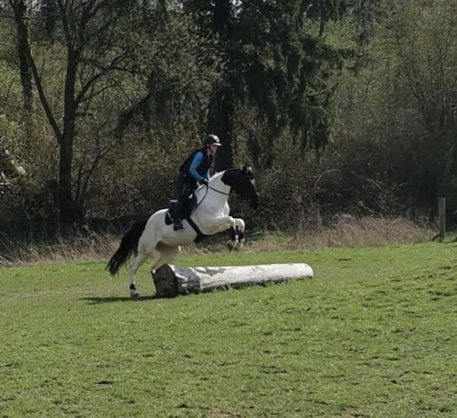 Im Auftrag der Besitzer zu verkaufen. Leider müssen wir aus persönlichen Gründen unsere 10 jährige Irische Sportpferd Stute abgeben. Orieo kam aus einer nicht idealen Haltungs- und Trainingssituation zu uns und wurde von unserer 14 jährigen Tochter und unseren Trainerinnen vorsichtig auftrainiert. Orieo kennt das dressurmäßige arbeiten bis hin zu Lektionen der Klasse A (Trab-& Galoppverstärkung und Seitengänge im Schritt und Trab begonnen) sowie das Reiten mit Ausbindern in allen Grundgangarten. Sie ist regelmäßig auf fremden Plätzen zum Springtraining, da sie hier aber dazu neigt etwas heiß zu werden haben wir die Priorität auf das rhythmische, gymnastzierende Springen gelegt, sie geht aber einzelne Sprünge bis A. Ging auch artig mit unserer Tochter als Springeinsteigerin Pacours auf Kreuzhöhe. Ebenso durfte Sie schon auf einigen Geländeplätzen Luft schnuppern und springt hier jeden Baumstamm, kennt Wasser und auch Hoch- und Tief-Sprünge, ist auf E Niveau sicher und ist auch schon einzelne Sprünge aus A Strecken gegangen. Sie ist brav beim ausreiten allein und in der Gruppe und kennt auch den Straßenverkehr bevor es in die Feldwege geht. Sie lässt sich artig longieren, egal ob mit Ausbindern oder ohne. Orieo ist brav und unkompliziert im Umgang. In manchen Situationen ist sie unerfahren und benötigt eine ruhige aber sichere Hand, dann löst sie diese auch problemlos. Sie ist verladefromm & schmiedefromm. Steht aktuell auf 4 Eisen, durch unser Gelände bedingt, kennt es aber auch barhuf zu laufen. Kennt Boxenhaltung mit täglichem Paddockgang, im Sommer 24/7 Weide und steht aktuell in einer Offenstallbox. Orieo ist gesund, zeigt sich allerdings Magen sensibel, wir arbeiten sie mit Druckverteilendem Gurt und sie hat 24/7 Heu zur Verfügung. Sie zeigt damit auch keine Probleme mehr. Regelmäßig entwurmt & geimpft. Orieo ist das perfekte Pferd für den ambitionierten Freizeitreiter, der mit seinem Pferd zusammen wachsen möchte und hier und da zu Lehrgängen und Trainings unterwegs sein will. Turniererefahrung hat sie bisher noch nicht, aber dem steht nichts mehr im Wege. Aufgrund ihres Ausbildungsstandes geben wir sie aber nicht an Einsteiger ohne passende Trainer zur Unterstützung ab. Aufgrund von Reitsport Aufgabe kann das komplette Zubehör (Ikonic Dressursattel 1 Jahr alt, Passier Springsattel 1 Jahr alt, Trense, Gurte, Decken, Gamaschen etc.) gegen entsprechenden Aufpreis übernommen werden. Händler und Schulbetriebe zwecklos, Vorstellung des Pferdes & Probereiten 30€ Pauschale, die beim Kauf angerechnet wird. Weitere Fotos/ Videos und Auskünfte gerne über WhatsApp 017642097320