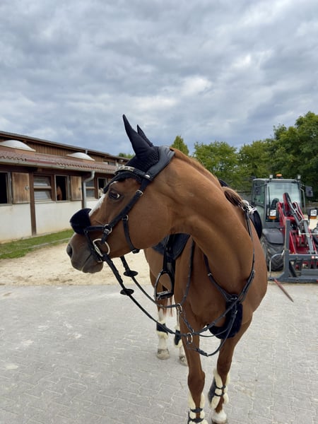 Aus persönlichen Gründen muss ich mich schweren Herzens von meiner absolut lieben ISH Stute Toffee trennen. Toffifee ist ein 2015 in Irland geborenes Irisches Sportpferd. Sie hat einen absolut ehrlichen und geduldigen Charakter, sowohl im Umgang als auch unter dem Sattel. Sie ist routiniert im Gelände, sowohl alleine als auch mit Begleitung. Sie kennt sämtliche Unweltfaktoren und bleibt stets händelbar. In der Halle und auf dem Platz arbeiten wir überwiegend an der Dressur, hier braucht sie einen sicheren Reiter, der weiß was er tut und sich sicher in der Hilfengebung ist. Toffee lässt sich sehr fein reiten, allerdings hat sie anfangs immer mal wieder noch probleme mit der Konstanten anlehnung, ebenso fehlt ihr manchmal etwas das Selbstbewusstsein. Sie ist ein sehr unerschrockenes Pferd und lässt so ziemlich alles mit sich machen. Springen wurde mit ihr nicht wirklich gefördert, all zu schlecht stellt sie sich aber nicht an. Sie ist aktuell 4 fach beschlagen, artig beim Schmied und auch beim Impfen, Wurmkur. Sie ist verladefromm, steht aktuell in einer Paddockbox, kennt aber auch den Offenstall in einer Stutenherde. Aufgrund eines kleinen Schönheitsfehlers, der sie nicht beeinträchtigt und wegen mangelndem Ausbildungsstand wird sie unter wert verkauft, hierzu privat aber gerne mehr. Bei Interesse kann auch gern die Ausrüstung gegen Aufpreis mit gekauft werden, darunter ein Passier Corona II Dressursattel und ein Prestige Paris X Springsattel, beide angepasst und in sehr gutem Zustand. Bei Interesse oder weiteren Fragen bitte ausschließlich per Whatsapp unter der Nummer 0172 7602697 melden. Toffee wird unter keinen Umständen in den Schulbetrieb oder an einen Händler abgegeben. Aktuelle Röntgenbilder von ende 2025 können privat gerne zugeschickt werden. Merkmale: - Rasse: Irish Sport Horse - Geschlecht: Stute - Geburtsjahr: 2015 - Farbe: Fuchs - Stockmaß: ca. 156 cm - Einsatzgebiet: Freizeit