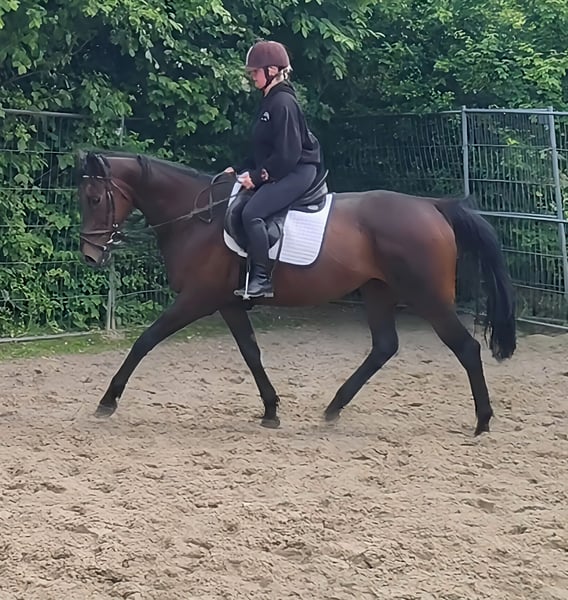Toll zu reitende 10 j Stute die es versteht auf ihre Reiterin einzugehen und auch einer ängstlichen Reiterin ein angenehmes,sicheres Reitgefühl vermittelt. Hier ist sie schon problemlos von Kindern geritten worden , daher könnten wir uns auch eine Verwendung im Schulbetrieb gut vorstellen.Durch ihr kompaktes Exterieur deckt sie auch größere oder auch etwas korpulente Reiter gut ab. Eine Stute mit prima Charakter sowohl gegenüber ihrer Reiterin als auch zu ihren Pferdekumpels. Sehr leicht in Beizeumung zu stellen Überaus komfortabel zu sitzen.Trecker, Radlader, LKWS usw. kennt sie.Bei Bedarf gegen geringen Aufpreis mit kompletten neuen Zubehör abzugeben. Inzahlungnahme möglich. Transport kann organisiert werden. Tierärztliche Ankaufsuntersuchung kann auch durch Ihren eigenen Tierarzt inklusive Röntgen und Blutuntersuchung erstellt werden. Wir freuen uns auf Ihren Anruf unter 015172059610. Schriftliche Anfragen werden Nicht beantwortet. Kein zur Verfügung stellung. Keine Ratenzahlung