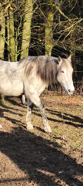 Mary ist eine sehr kommunikative freundliche Stute aus Irland. Dort schien sie Unschönes erlebt zu haben. Sie braucht eine klare, liebevolle und feine, achtsame Führung, dann vertraut sie auch. Sie ist kern-gesund & leichtfuttrig. Zähne und Hufe müssen regelmäßig gemacht werden. Sie ist angeritten, wäre aber auch glücklich als Beistellpferd (war letzten Sommer mit altem Ponywallach auf Weide, das hat sie sehr genossen) Nun muss ich sie schweren Herzens abgeben, da ich nicht mehr für sie sorgen kann. Sie wohnt im Süden von Hamburg und ich mittlerweile am Bodensee, wohin ich sie nicht mitnehmen kann. Platz vor Preis! Sie nimmt ihre Sachen mit. Ruf mich gerne an oder schick mir eine WhatsApp unter 0151-18993349 Die.-Fr. ab 16:00 und am Wochenende.