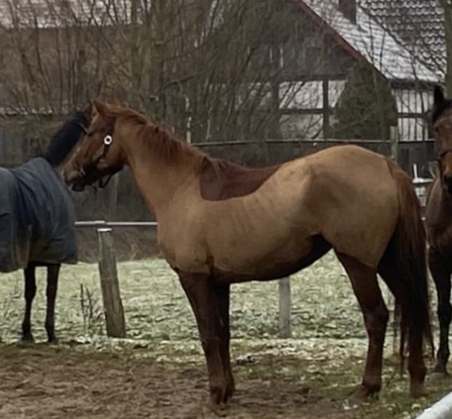 Diese sympathische Stute hat das richtige Temperament, ist nicht schreckhaft und will alles richtig machen. Sie ist gut zu sitzen und weich in der Hand. Sie kennt Herdenhaltung und Boxenhaltung