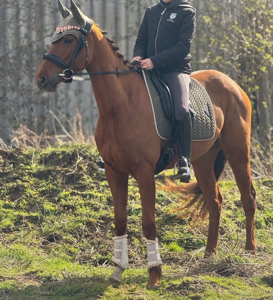 Wir suchen für unsere 3-jährige Stute Tosca ein passendes Zuhause, in dem sie altersgerecht gefördert wird. Aktuell hat sie ein Stockmaß von ca. 1,60 m. Tosca läuft bereits brav unter dem Reiter in allen drei Grundgangarten und hat mit Reiter erste Erfahrungen mit kleinen Sprüngen gesammelt. Wir sehen in ihr großes Potenzial sowohl für die Dressur als auch für den Springsport. Sie zeigt sich sehr unerschrocken, ist für ihr Alter klar im Kopf und steht artig am Putzplatz. Tosca ist barhuf und kennt das Verladen, wobei sie sich dabei unkompliziert und brav zeigt. Bei ernsthaftem Interesse bitten wir darum, uns einfach eine Telefonnummer zu schicken. Wir melden uns dann telefonisch und besprechen alles Weitere persönlich.