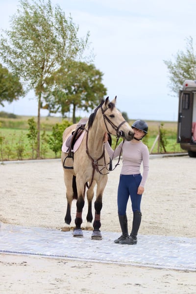 Beautiful palomino Irish Sport Horse mare – Sandy ✨ Sandy is a particularly beautiful palomino horse, 5 years old, with a friendly character, a height of 1.51m, and strong athletic potential. She is fully up to date with the dentist and has recently undergone a clinical and RX examination (legs, back, and neck). 🐎 Sport & work: • Jumps smooth courses of 75-80 cm • Has already participated in a dressage competition • Enjoys going on forest rides and outdoor walks 🌿 Character & handling: • Social, enjoys being in a group in the pasture • Works willingly and learns quickly • Reliable, but needs a rider with feel and experience Sandy feels best with a sporty and refined rider, someone who can ride calmly but clearly and wants to further develop her talent. In short, a beautiful sporty mare with many possibilities, ready to grow further together with the right rider. 📞 More info: +32 475 68 22 43 🎥 Videos available upon request via the website
