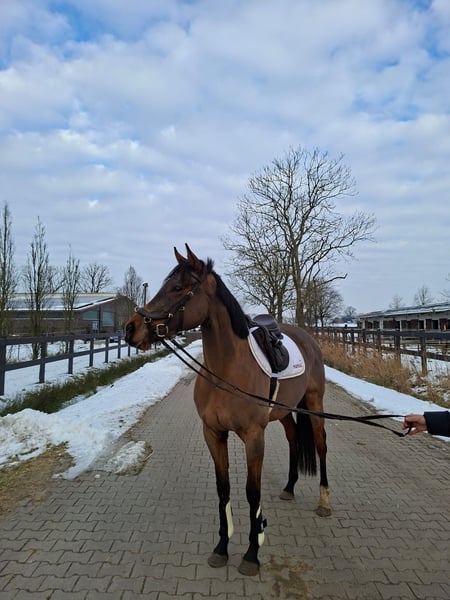 XXL Nachwuchspony mit bester Perspektive zu Verkaufen. Kiwi ist sowohl für den Freizeitsport als auch für ambitionierte Turnierreiter beste Vorraussetzungen. Durch ihre ruhige und aufgeschlossene Art ist sie der ideale Begleiter im Sport. Sie geht stets mit Neugier an neue Dinge heran und zeigt sich dabei sehr lernwillig. Auch im Gelände oder neuen Situationen zeigt sie sich unerschrocken und sicher. Daher bietet sie auch vielversprechende Möglichkeiten in der Vielseitigkeit. Ausgestattet mit guten Grundgangarten und einem Charakter aus Gold ist sie auch als Nachwuchspony für Kinder geeignet. Derzeit ist wird sie hauptsächlich dressurmäßig gefördert, macht jedoch auch am Sprung eine gute Figur. Bei weiteren Fragen stehe ich gerne per WhatsApp unter 0176 64040904 zur Verfügung.
