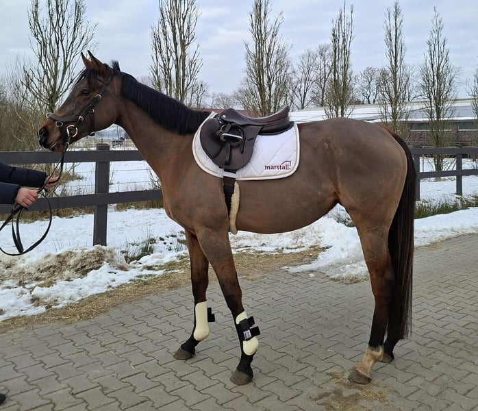 Sprzedaję w imieniu właściciela bardzo spokojną, łagodną i otwartą klacz, która daje szerokie możliwości zarówno dla rekreacyjnego jeźdźca, jak i dla ambitnego zawodnika startującego w konkursach. Nowe sytuacje podchodzi zawsze z pewnością siebie, opanowaniem i ciekawością. Zarówno w kontaktach z ludźmi, jak i pod siodłem, jest bardzo chętna do nauki i chce robić wszystko poprawnie. Dotychczas była jedynie lonżowana, ale dzięki dobrej kondycji i predyspozycjom, nadaje się zarówno do jazdy w dyscyplinie ujeżdżenia, skoków, jak i wszechstronnej konkurencji, a także dla ambitnego rekreacyjnego jeźdźca z rodziną w domu. Pomimo jeszcze początkującej edukacji, może być bez problemu jeżdżona przez dzieci i początkujących. W razie pytań lub chęci jazdy próbnej, prosimy o kontakt pod numerem 0173/5711704. Film dostępny na życzenie.