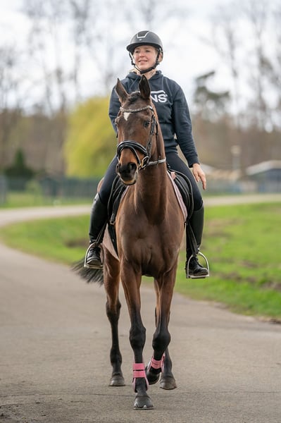 Allow me to introduce our little Lia, a five-year-old mare with a heart of gold who stands at 1.58 meters. She captivates everyone with her charm. It almost breaks my heart to see her looking a bit disheveled at the moment, as her long journey to us has clearly taken a toll on her, and she doesn't shine as brightly as she truly deserves. However, those who look beyond her appearance will find a raw diamond with a character made of pure gold. All information provided without guarantee. No legal claims or installment plans. Trial ride Mon-Fri €25 Sat-Sun €30 Show (always) €10 Feel free to contact us! 01703718888 Lia is incredibly well-behaved and honest in her handling, making it impossible not to fall in love with her immediately. She masters the basic gaits—walk, trot, and canter—and has already enjoyed her first small jumps with great enthusiasm. I am especially proud of how brave she already is in the field—whether alone or in a group, she always keeps a cool head. Of course, due to her age, she still needs some further training, but I am confident she will become a natural family horse in the future. Since she currently doesn't look her best physically, I have significantly adjusted the price to help her find a new home quickly. Those who give her time to recover will gain a loyal partner who will never let them down.