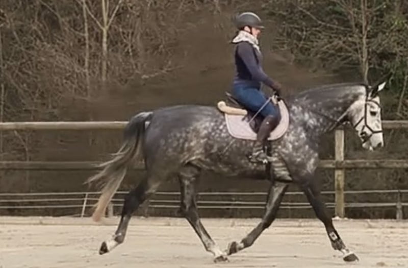 For sale is our lovely and exceptionally personable grey mare, Celtic Celine. She arrived with us at the end of 2023, having been raised in a species-appropriate manner in Ireland. Since then, she has been trained in a versatile manner in dressage, jumping, and trail riding, and has also been presented at competitions. Due to her size, temperament, and character, she is ideally suited as a voltige horse. She has already completed several voltige training sessions here and has proven to be calm, motivated, and free of sensitive points during these exercises. Both her size and her basic gaits have been found very pleasant by the voltige riders. We believe that voltige is her true calling, and therefore, we would be happy to place her as a voltige horse. She is familiar with many exercises in all gaits, including some pair exercises, and shows potential for more advanced tasks. Videos can be sent upon request, as the upload here was not successful. Celine has already gained competition experience in show jumping; she is placed in Spf A and has won a habituation test. At competitions, she remains unexcited, resilient, and does not spook easily. In dressage, she is also easy to ride, comfortable, and moves with steady contact, though she can be somewhat spirited at the beginning. She requires a rider with clear aids to ensure both enjoy working with her. Celine enjoys trail riding and is familiar with both solo and paired rides. She is accustomed to dogs and generally shows little spook and is well-behaved in handling. She loves being groomed and pampered. Of course, she is healthy, shoeable, and loading-friendly. She had a good X-ray exam at age three. We can provide these images upon request. Videos of voltige, jumping, and dressage can be sent via WhatsApp. A trial ride is possible, preferably by appointment after a phone call.