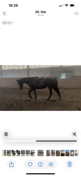 Brave Stute , lieb im Umgang , kennt Kinder , Hunde und Traktoren , sie kennt longieren , Freispringen und geht als Handpferd mit ins Gelände . Sie ist noch nicht geritten Sie ist herdenverträglich mit Wallachen und Stuten . Sie ist brav beim Schmied und Tierarzt .Sie kennt Offenstall und Boxenhaltung .