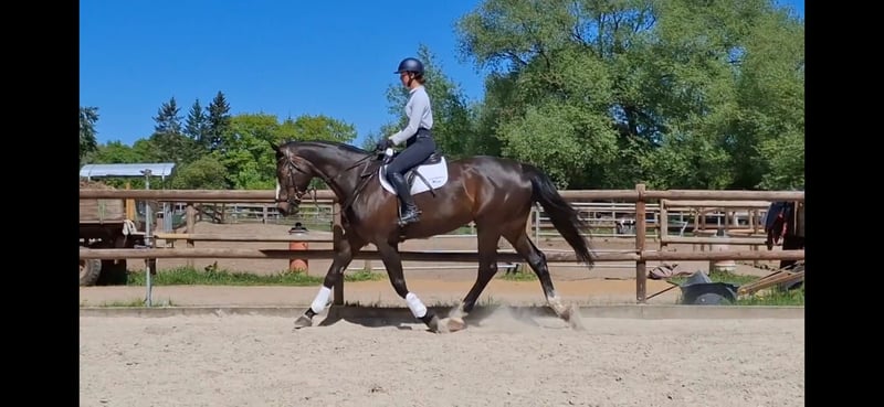 Duża, piękna klacz o imponującym budowie i dużym potencjale. Klacz od międzynarodowego ogiera "Quintero la Silla", który należy do najlepszych skoczków świata. Oto kilka osiągnięć: - 1. miejsce w CSIO*** 1,60 m w finale Pucharu Narodów w Barcelonie / ESP - 1. miejsce w CSI***** 1,55 m w skokach w Paryżu / FRA - 1. miejsce w CSI**** 1,50 m w Grand Prix Bremy - 1. miejsce w CSI***** 1,55 m Mercedes Swiss Master w Zurychu / SUI 89% jej potomstwa skacze powyżej 1,40 m lub wyżej. Klacz zawsze i z dużym potencjałem skacze wszystko, wybacza błędy jeźdźca. To koń, który pozwoli Ci rozwijać się w sporcie. Koń startował w konkursach skokowych oraz w międzynarodowych zawodach WKKW, w CCI* piękna ujeżdżenie oraz dwie bezbłędne rundy w terenie i skokach. Przygotowany do startów w skokach i WKKW. Obecnie jeźdzona przez dziewczynę, bardzo przyjazna, łatwa i wytrzymała w użytkowaniu. Link do ojca "Quintero la Silla" W razie pytań proszę dzwonić lub wysłać WhatsApp: 01708280971 lub +34 608 195 744