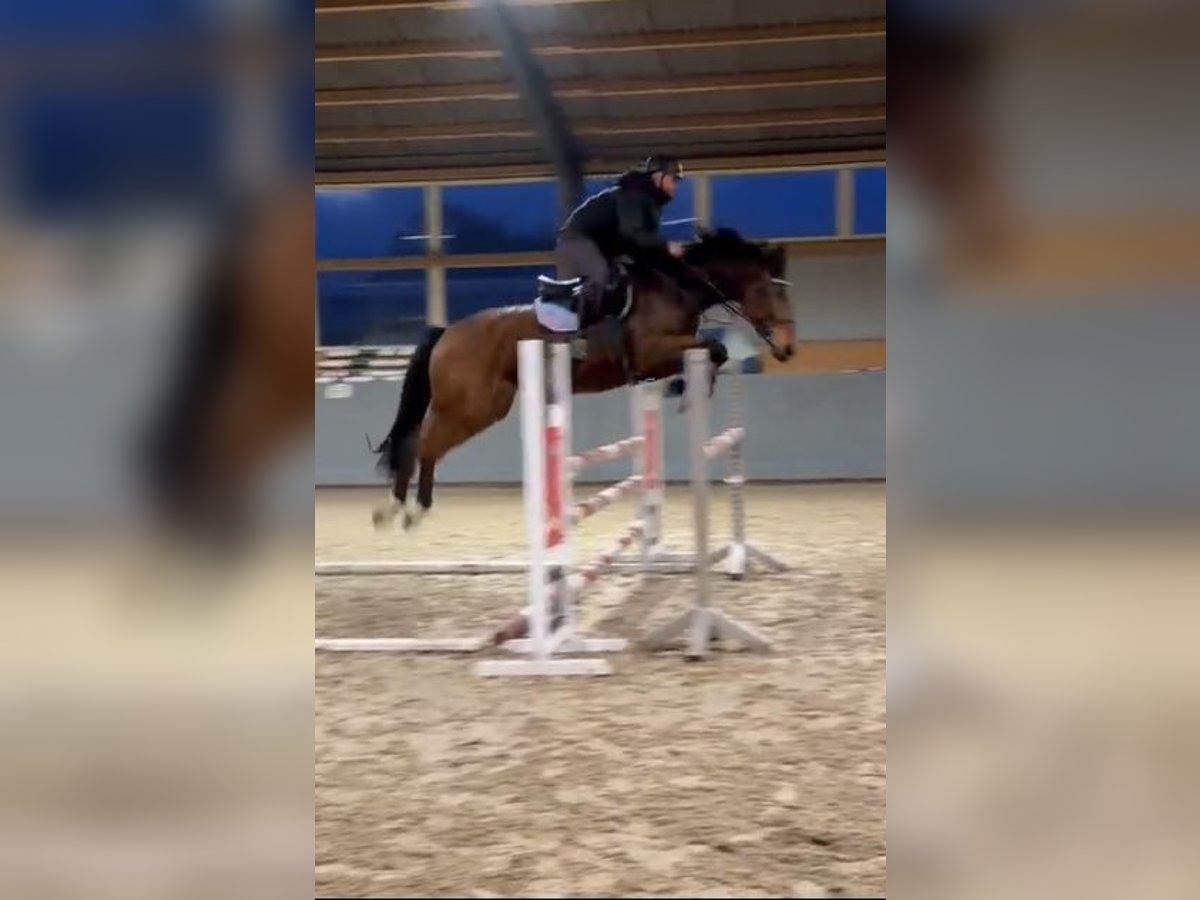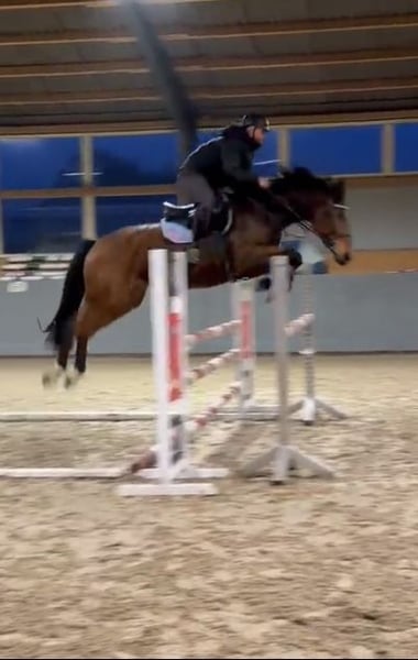 1m won - 1 year in training. Now he is with a 15-year-old girl for riding participation. Unfortunately, we have no time. Free jumping 150cm is no problem for him. Below, the rider jumped single jumps of 120/130cm. Healthy and trouble-free horse. He runs in the lungeing machine every day. Sweet in the pasture. I can send several videos/information via WhatsApp.