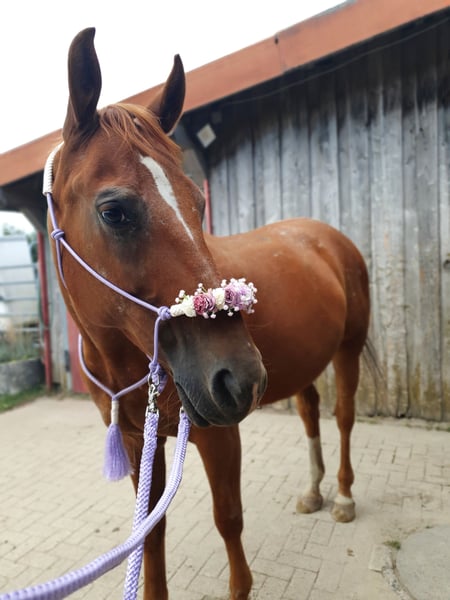 Schweren Herzens muss ich nun diesen Schritt gehen. Ich suche für meine liebevolle Stute ein neues Zuhause, in dem sie rundum glücklich sein kann. Sie ist 2014 geboren, ein polnisches Warmblut mit einem Stockmaß von 1,56 und einem Körpergewicht von 500Kg und ein absolutes Herzenspferd. Anhänglich, verschmust und sehr ehrlich wenn man gut mit ihr umgeht. Sie zeigt klar, wenn ihr etwas unangenehm ist, tritt oder beißt aber nicht. Wer lernt, ihre Körpersprache zu lesen, wird einen treuen, verständnisvollen Freund fürs Leben gewinnen. Mit anderen Pferden ist sie sehr verträglich, da gab es noch nie probleme. Sie ist also rangniedrig. Luna war früher im Schulbetrieb, deshalb möchte ich auf keinen Fall, dass sie wieder in einen solchen Alltag kommt. Aktuell wird sie zwei Mal pro Woche geritten, zwei Mal pro Woche locker longiert und einmal Bodenarbeit ansonsten genießt sie ihre Koppelzeit. Sie ist ein Diätpferd und neigt zu Übergewicht, besonders im Sommer, daher muss die Fütterung sorgfältig angepasst werden. Im Sommer lebt sie rund um die Uhr auf der Koppel, im Winter steht ihr eine Box mit Paddock zur Verfügung. Sie ist barhuf, hat gesunde, stabile Hufe, ein unauffälliges Blutbild (von 2024) und bisher keine Operationen. Mir ist besonders wichtig, dass sie gesund und gymnastizierend geritten/ gearbeitet wird. Sie liebt das feine Arbeiten, reagiert gut auf korrekte Hilfen und macht zum Beispiel Schenkelweichen am Halsring. Druck oder übermäßige Zügelführung sind nichts für sie und das wünsche ich mir auch nicht für sie. Luna braucht jemanden, der Freude daran hat, sie regelmäßig und gesund zu bewegen. Sie ist immer super motiviert und hat an allem spaß egal ob Stangenarbeit, Dressurarbeit, Tricks, ... Früher hatte sie starken Gurt- und Sattelzwang aufgrund von einem unpassenden Sattel. Sie hat einen Maßsattel bekommen und seitdem zeigt sie kein Gurt- oder Sattelzwang mehr bei mir und meiner Schwester. Bei fremden Personen ist sie anfangs skeptisch und reagiert auf Berührungen sensibel aber nicht bösartig. Charakterlich ist sie eine Stute, die gehört und verstanden werden möchte. Sie testet Fremde manchmal aus, ist aber unkompliziert und absolut cool, wenn man fein mit ihr arbeitet. Vertrauen und ein respektvoller Umgang stehen für sie an erster Stelle. Ich möchte sie auch als reines Freizeitpferd abgeben ohne Turnierambitionen. Sie ist überhaupt nicht schreckhaft und man kann eigentlich alles mit ihr machen. Mir liegt sehr am Herzen, dass sie in erfahrene Hände kommt. Deshalb möchte ich sie zunächst Ein bis zwei Monate zur Verfügung stellen, damit wir uns gegenseitig kennenlernen können und sie sich an die neue Person gewöhnen kann. Erst wenn das Bauchgefühl von beiden Seiten stimmt, erfolgt der endgültige Verkauf. Ich suche jemanden, der Zeit, Erfahrung und Freude am gesund erhaltenden Training hat und meiner Stute das liebevolle Fünf-Sterne-Zuhause bieten kann, das sie verdient. Abgegeben wird sie mit Maßsattel (+5500€ VB). Weiteres Zubehör würde ich einfach so mitabgeben. AKU darf auf eigene Kosten gerne gemacht werden Weitere Infos erfolgen bei der privaten Kontaktaufnahme. Bitte stellen sie sich vor und erzählen sie gerne schon etwas über sich und ihre Vorstellungen