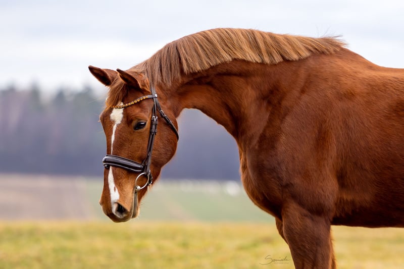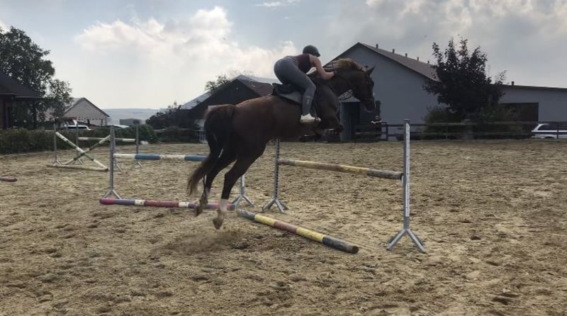 For sale: a beautiful Wielkopolska mare. The mare has a wonderful temperament, making her suitable for both beginners and advanced riders. She has been in training since spring and works very well on the lunge, rides out in the terrain, and is prepared for her first competitions. Very comfortable and rideable, she is a willing horse that moves forward evenly. She handles breaks in training without any issues; she’s a “mount and go” type. She has experience with off-site training sessions and behaves just as well away from home. She loads onto the trailer without problems. Her sire is the French stallion Bayard D’Elle, who competes successfully up to 160 cm classes (see last photo). Healthy, front shoes fitted, current clean X-rays available for review, vaccinated, dewormed, and regularly dewormed. Please contact me for more information or to arrange a test ride!