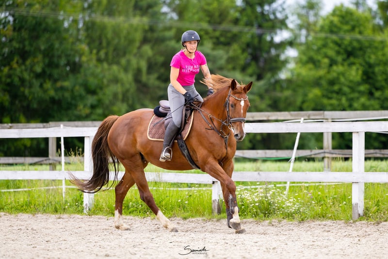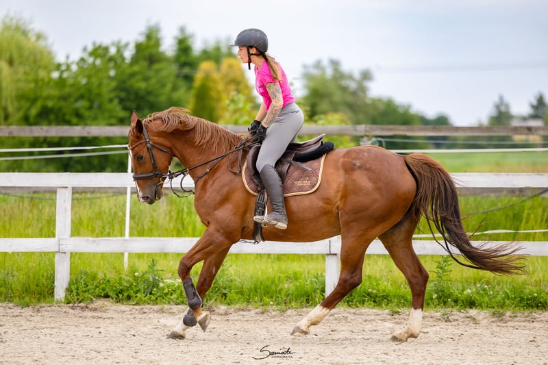 Zum Verkauf steht eine wunderschöne Wielkopolska-Stute. Die Stute hat einen bezaubernden Charakter und eignet sich sowohl für Anfänger als auch für Fortgeschrittene. Sie befindet sich seit Frühling im Training, arbeitet sehr gut an der Longe, geht ins Gelände und ist bereit für ihre ersten Turniereinsätze. Sehr bequem und reitbar, ist sie ein williger und gleichmäßig vorwärts gehender Partner. Eine Trainingspause stört sie nicht – sie ist ein „Einsattzirkon“, das sofort losreitet. Sie hat bereits an Ausfahrten teilgenommen, bei denen sie sich wie zu Hause verhält. Problemlos im Anhänger zu transportieren. Ihr Vater ist der französische Hengst Bayard D’Elle, der erfolgreich bis 160 cm Springen geht (letztes Bild). Gesund, vorne beschlagen, aktuelle Röntgenbilder zur Einsicht vorhanden, geimpft, entwurmt und regelmäßig entwurmt. Bei Interesse und für eine Probefahrt stehe ich gern für weitere Informationen zur Verfügung!