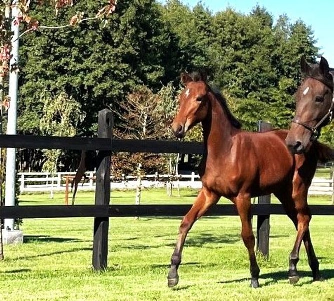 Brittany Only FW is the daughter of Be Cute de Muze, sired by First Call de Muze Z, who competed successfully at the international GP level and is a clone of Ratina Z. From this damline, many outstanding horses originate, including full brothers Ratina’s Rebel Z I-III, Crown Z, Rex Z, Ahorn Z, Heureka, and Goliath Z. From the youngest generation, Joris’ stallion Cuba Libre de Muze and the son of First Call, Istanbul MVD, stand out. The sire of Be Cute is the renowned jumping star Joris de Brabander, stallion Bamako de Muze — a top-class show jumper (Karline de Brabander). His progeny have earned him a place at number 27 in the world rankings for show jumping sires. His dam, the proven sport mare Fragance du Chalus, also produced the exceptional sire Mylord Carthago, ranked 5th in the same list. The dam of Brittany Only FW is Viento de Muze, from the first foal crop of the very promising Quickly v/d Kruishoeve, a son of the highly acclaimed Mosito van het Hellehof. Her damline includes influential ancestors such as Fantomas de Muze, Bamako de Muze, Taran de la Pomme, and Querlybet Hero. Further back, the pedigree features Pachat II, Fleuri du Manoir, and many others. This indicates that the pedigree of Quick reflects at least nine consecutive generations of de Muze stallions. Quickly’s grandmother, Quickly Beau Rêve vd Kruishoeve Z, jumps at 1.45 m and is a full sister to Bonawentura vh Kruishoeve Z, who also competes at the international level. Quickly is a stallion with a top character and balance, excelling in show jumping with an excellent posture, reflexes, and scope — qualities immediately evident in Belgian competitions. His early international performances have been very promising. Viento River Kwai de Muze’s dam, River Kwai, is a daughter of the clone of E.T. Han, the winner of the World Cup in show jumping under Hugo Simon (AUT), who, as a gelding, could not leave offspring of his own. Like all mares at Joris de Brabander’s stud, River Kwai boasts an excellent damline, with four mares successfully competing at the international level between 140-160 cm, ridden by top riders such as Lorenzo De Luca and Maikel van de Vleuten. River Kwai’s dam produced another top sire, Kept Secret de l’Amitié Z, as well as the GP-level show jumper Qnokk de Muze, who took second place at the Belgian Championships for 7-year-olds under Olivier Philippaerts. This phenomenal damline has produced many stars, including European Champion Glock’s London (Gerco Schroeder), his full brother Casimir de la Pomme, Golden Hawk, and the 6-year-old World Champion Pikachou de Muze, among dozens of other internationally successful show jumpers. In competitions, Viento impresses with excellent riding qualities, power, and full-body utilization during jumps. As a 4-year-old Belgian stallion, he completed three consecutive clear rounds.