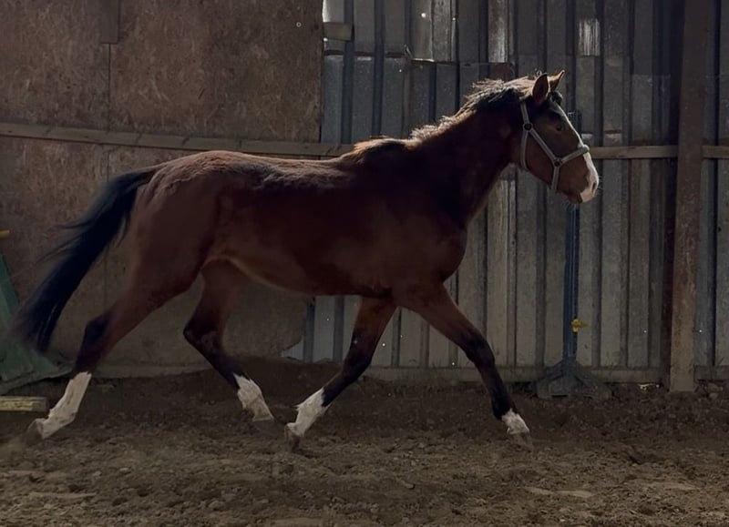 Klacz ma około 162 w kłębie, grzeczna przy podstawowych zabiegach pielęgnacyjnych. Po pierwszym korytarzu. Potrafi chodzić na lonży. Koń bardzo dobry ruchowo we wszystkich chodach. Ojciec M-Hidalgo Matka Caluna /Lombard /Genius