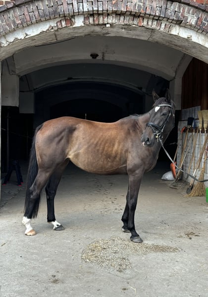Verkaufe eine 6-jährige Stute. Stockmaß 165 cm. Das Pferd ist geeignet für ein reitendes Kind, beißt nicht, tritt nicht, schnappt nicht und schluckt nicht. Problemlos im Herdenverband. Sie springt gerne, ist leicht zu reiten, zeigt kein Buckeln, liebt den Kontakt zum Menschen. Sie verfügt über eine sehr große Kraft im Hinterteil, insbesondere beim Springen, ist dabei schnell und wendig. Die Stute wurde spät eingeritten, daher ist sie bis 100 cm ausgebildet, im Einzelunterricht bis 110 cm, mit der Möglichkeit, deutlich höher zu springen. Sie war bei Auswärtstrainings dabei und hat ihre ersten sehr erfolgreichen Turniere absolviert. Sie geht sowohl alleine als auch mit anderen Pferden gerne ins Gelände und wäre auch für Vielseitigkeit geeignet, da sie ausdauernd ist. Das Pferd befindet sich in kontinuierlichem Training. Sehr gute Abstammung: Vater Roland, Nachkomme von Ramiro’s II / Ramiro Z. Mutter Rakija, Nachkomme von Efez / Czuwaj. Das Pferd zeigt keine gesundheitlichen Probleme und besitzt einen aktuellen TüV, gültig bis Dezember 2024.