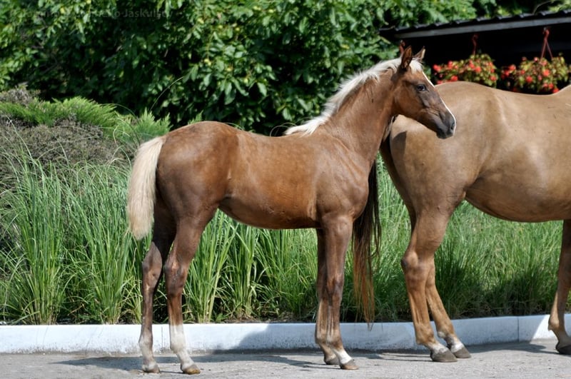 Palomino warmblood mare. Very good confirmation and gaits. She was ridden as 3,5 years old under saddle and later as a broodmare she gave us 5 very good foals which are in Poland, Belgium and France (last 5 photos). Very good broodmare. Not in foal due 2026. Interesting pedigree from jumping lines: https://www.horsetelex.com/horses/pedigree/2326287/gloria-s Other horses: https://sites.google.com/grupadrewnex.pl/palominojaskulscy Facebook: https://www.facebook.com/PalominoJaskulscy