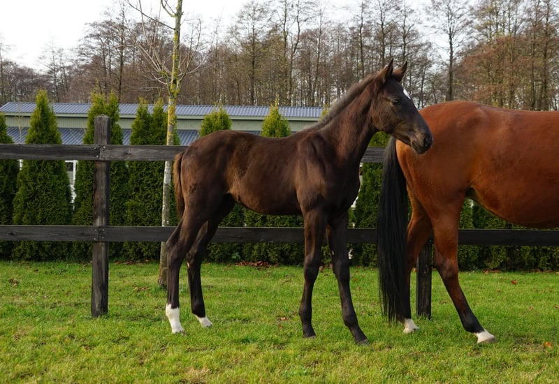 Ogierek Ronaldo Only Fw is a progeny of Mosito van het Hellehof, one of the first recognized sons of Elvis ter Putte and one of the most promising young sires in Belgium. Mosito comes from a dam line featuring mares such as Action-Breaker and Quasimodo van de Molendreef. The dam of Mosito, Hadise van het Hellehof (by Nabab de Rêve), is also the dam of the top horse Kasper van het Hellehof, ridden by McLain Ward. Initially, Mosito was ridden by Karline De Brabander, later competing under Brazilian rider Bernardo Alves. In 2022, he made an outstanding impression by placing second at the prestigious Rolex GP5* competition. Mosito's offspring have also shown excellent results. In the final of the 5-year-old World Championships, nine of his progeny participated. Meanwhile, several of his offspring have advanced to higher levels, such as Qnokke de Muze, Qosito van de Koekoek, ES, Qoup de Coeur de Muze, among others. Additionally, several sons have been approved by various studbooks. The dam of the stallion, the mare River Kwai de Muze, boasts an excellent pedigree on her maternal side, with four successive mares producing successful international-level offspring at 140-160 cm, ridden by riders such as Lorenzo De Luca and Maikel van de Vleuten. River Kwai's dam line has produced notable horses including the top stallion KEPT SECRET DE L'AMITIÉ, as well as the international GP show jumper mare QNOKKE DE MUZE, who placed second at the Belgian Championships for 7-year-olds under Olivier Philippaerts. This is a phenomenal maternal family, from which come renowned horses such as the European Champion Glock’s London (Gerco Schroeder), his full brother Casimir de la Pomme, Golden Hawk, the 6-year-old World Champion Pikachou de Muze, and dozens of other horses with international jumping careers.