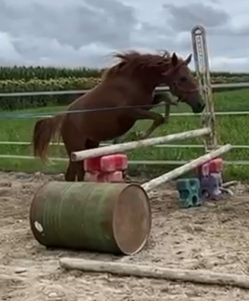 Diese Stute ist 135cm groß. Ihre Charakter können wir beschreiben als pflegeleicht ,brav und nicht schreckhaft . Kennt 4GGA und kann gehen auch alleine ausreiten. Wird vorbereitet für Springturnier . Sie ist noch am Anfang seines Ausbildung aber sehr talentiert. Kennt Hufschmied und steigt im jede Anhänger ein.TÜV kann gerne gemacht werden. Im gemischte Herde hat kein Problem. Für weitere Fragen bitte melden
