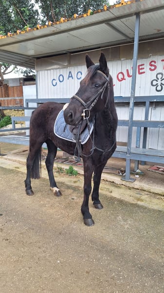 **Classic Pony – Giumenta giovane e promettente** Disponiamo di una splendida Pony femmina , nata nel 2021. Questa giovane morella si presenta con un’altezza al garrese di circa 139 cm, perfetta per cavalieri in crescita o appassionati di discipline come il salto. Dotata di un carattere equilibrato e molto ben educata, questa pony si distingue per la sua attitudine al salto, mostrando già ottime qualità naturali e una buona predisposizione per questa disciplina. La sua conformazione compatta e resistente la rende ideale per cavalieri alle prime armi o per chi desidera sviluppare un rapporto di fiducia e collaborazione con un cavallo di qualità. Perfettamente maneggevole e ben ridenata, questa Classic Pony combina il fascino di un aspetto gradevole con le caratteristiche di affidabilità e versatilità che la rendono una scelta eccellente per chi cerca un compagno di avventure e competizioni nel salto. --- Se desideri ulteriori dettagli o modifiche, sono a tua disposizione!
