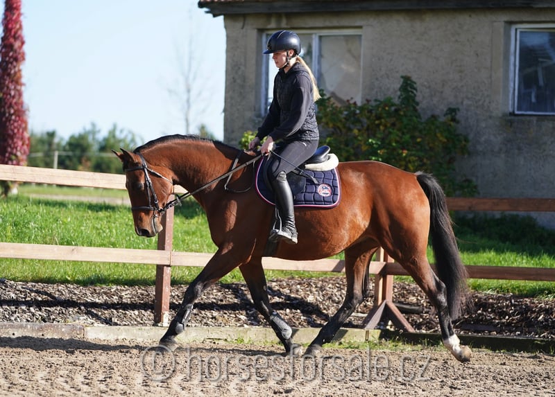 GUMIDEK - koń rekreacyjny w świetnej cenie Gumidek to sympatyczny wałach dla jeźdźców rekreacyjnych, którzy nie dysponują dużym budżetem. Gumidek jest w pełni zdrowy i pochodzi bezpośrednio od hodowcy. Nie był dużo trenowany z powodu braku czasu, zna ujeżdżalnię i wybieg, ma bardzo dobry ruch, nigdy nie skakał pod siodłem, ale podczas skoków wolnych pokazuje świetną technikę skoku, więc można go również trenować w tym kierunku. Nie jest trudny do jazdy pod siodłem, ale od czasu do czasu może być płochliwy - więc nie nadaje się dla początkujących. Ale poza tym nie jest złośliwy, nie bryka, nie dosiada, jest dosiadany przez dziewczynę z wodzy. Zdrowy (dostępne zdjęcia RTG), chodzi na bosaka. Cena: 7.500€ Aby uzyskać więcej informacji, zadzwoń pod numer +420 602 862 723 https://youtu.be/fxCCVhC_UPo https://youtu.be/CQgLydPXhTk Urodzony: 2015, wzrost: 165cm, rodowód: Dard Diamond (Destano) x Carol Lokalizacja: 45 minut od Pragi, Czechy, transport może być zorganizowany. *** więcej koni na www.verkaufspferde.cz ***