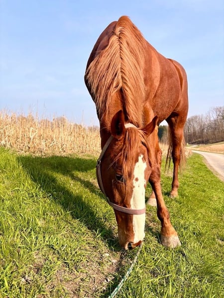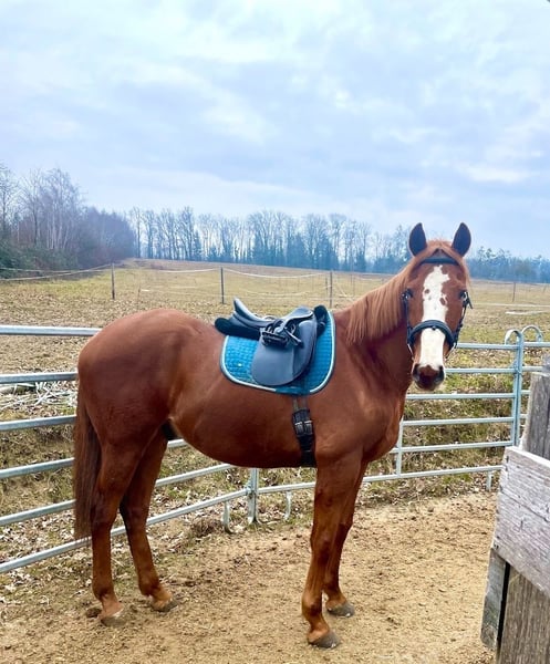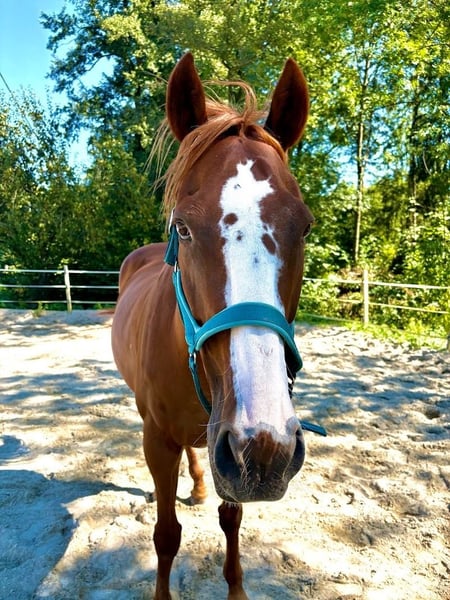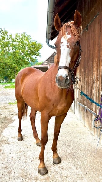Da wir nunmehr auf ein gemütliches, älteres Familienpferd für die Kinder und mich umsteigen sucht unser Sportler schweren Herzens ein neues Zuhause. Geb. 2012, CZ Warmblut, ca. 170cm Stockmaß Für ambitionierte Freizeitreiter die sportlich unterwegs sind und ihn auch im Springen gerne weiter fördern wollen. Er braucht klare Regeln und seine tägliche Sporteinheit oder Schrittmaschine, damit er zufrieden ist. Er bindet sich sehr an seine ReitpartnerIn und vertraut dann auch in Situationen, die ihm eigentlich nicht geheuer sind. Er ist kein Kinderpferd und kein Anfängerpferd. Er wurde als er gut ausgelastet war im Schulbetrieb auch schon von fortgeschrittenen (Teenie)-SchülerInnen geritten. Vorne Beschlagen, hinten Barhuf. Er braucht einen konsequenten aber einfühlsamen Partner und täglich Auslastung, dann ist er rundum zufrieden und ein entspannter Freund fürs Leben.