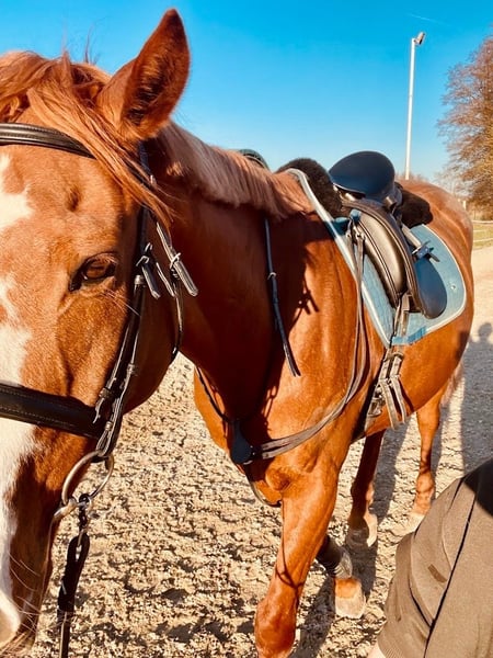 Since we are now transitioning to a cozy, older family horse for the children and myself, our competitive sport horse is with a heavy heart looking for a new home. Born in 2012, Czech Warmblood, approximately 17 hands tall. Ideal for ambitious recreational riders who are active and wish to continue developing his skills, including jumping. He needs clear boundaries and daily exercise, such as a training session or a walk in the arena, to stay content. He forms strong bonds with his rider and trusts them even in situations that might otherwise be intimidating. He is not a beginner or children's horse. When fully exercised, he has previously been ridden by advanced (teenage) students in riding schools. Front shoes, hind hooves barefoot. He requires a consistent yet gentle partner and daily activity. With proper care, he is a happy, relaxed companion for life.