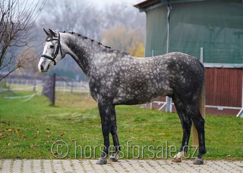 LUCIFER - vielversprechendes Springpferd Lucifer ist ein bildhübsches junges Springpferd mit sehr gutem Sprungablauf. Er ist etwas später ins Training gekommen und hat erst mit 5 seine Grundausbildung absolviert, ist für seinen Turnierdebut bereit. Er läuft schon zu Hause ein kleines Parcour, wobei er tolle Einstellung zeigt, ist motiviert, nicht guckig, weiss immer, wo die obere Stange ist. Eignet sich für einen Reiter, der gewisse Erfahrungen mit Jungpferden hat und sein Potenzial weiterentwickeln kann. RTG-Bilder vorhanden, gesund, korrekt, klar im Kopf, ohne Unarten. Geb.: 2020, Stockmaß: 165cm, Abstammung: Cantesini x Catango Z https://youtu.be/ju0ovHni9L4 Standort: 1 Stunde von Brno, Tschechien, Transport kann organisiert werden. *** weitere Pferde unter www.verkaufspferde.cz ***