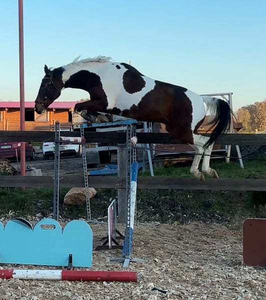 Nous proposons un joli hongre tacheté blanc-brun, de sang chaud tchèque, âgé de 5 ans. Barny possède un ensemble récent de radiographies claires et peut être votre prochain partenaire pour le saut d’obstacles ou un magnifique compagnon pour le hunter. Barny est capable de faire les deux, avec un galop naturellement équilibré et lent, ainsi qu’un galop de saut compétitif. Il est très honnête et, en entraînement, il peut facilement sauter un obstacle de 1,20 m, même si nous ne le faisons pas souvent afin de respecter son bien-être. Contactez-nous sur WhatsApp pour plus d’informations et des vidéos. 00420 739 122 134
