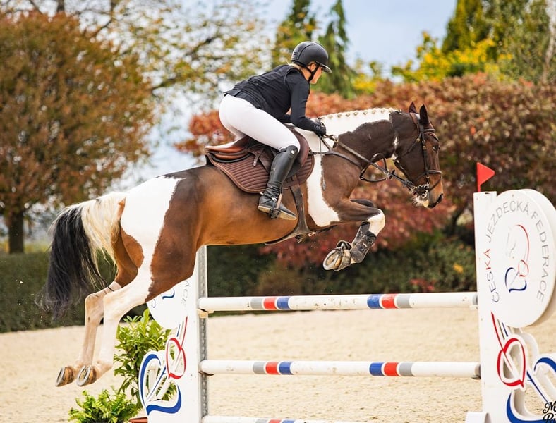 We offer an interesting colour white-brown spotted gelding of Czech warmblood, 5yo gelding. Barny has a fresh set of clear xrays and can be both your next Ping Pong for higher jumping or your beautiful hunter partner. Barny can do both, naturally balanced and slow canter and a competitive jumper canter. He is very honest and in training he can do a 120 jump easily- even though we dont do that often as we try to be honest towards him. Contact us on whatsapp for more information and videos. 00420 739 122 134