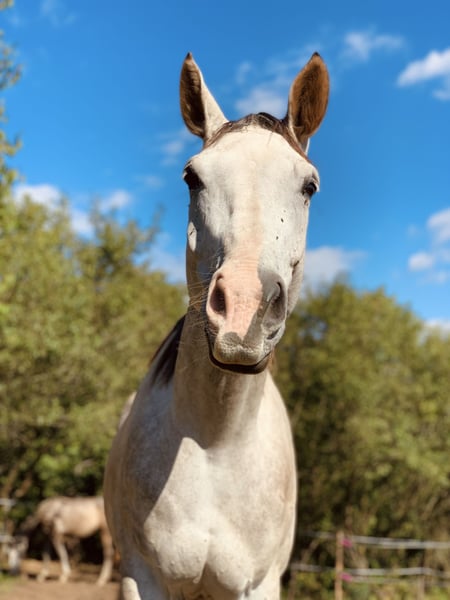 Elegant Czech Warmblood gelding, born in 2020, with a striking grey coat and an impressive height of 180 cm. This well-built and balanced horse is ideal for leisure riding, offering a smooth and comfortable ride for riders of various levels. His calm temperament and reliable disposition make him a pleasure to handle and ride, whether for relaxed outings or light training sessions. Well-ridden and easy to manage, he demonstrates good manners both on and off the arena. A versatile and promising partner for anyone seeking a quality leisure horse with excellent breeding and a noble appearance.