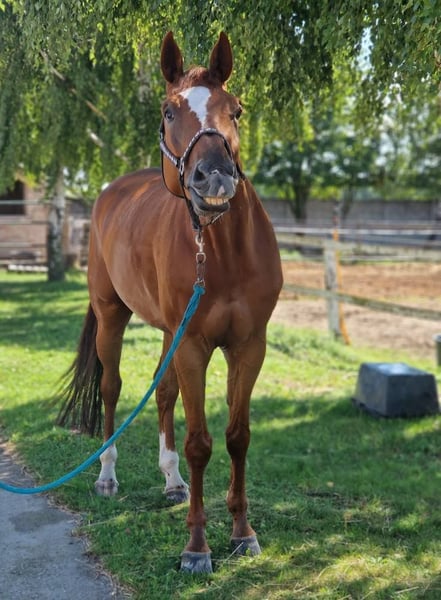 Hongre de 6 ans par Aristo Z 🎥 : https://youtu.be/uJfhoshusIk?si=FoQeep69cGafs_FT Magnifique hongre de 6 ans par Aristo Z, mesurant 1,75 m. Un véritable gentil géant au tempérament en or, toujours doux, courageux et facile à monter. Élevé et présenté par des cavaliers amateurs, il concourt actuellement autour de 1,00 m avec beaucoup de potentiel pour aller plus haut. Il est simple face à chaque obstacle, ne regarde jamais ni ne s’arrête, et réalise aisément des changements de pied simples avec un trot équilibré. La même attitude tous les jours, qu’il soit monté quotidiennement ou une fois par semaine. Sûr, confortable et un vrai donneur de confiance. Jambes propres, radiographies récentes disponibles ! Contactez-moi via wa.me/420733736574