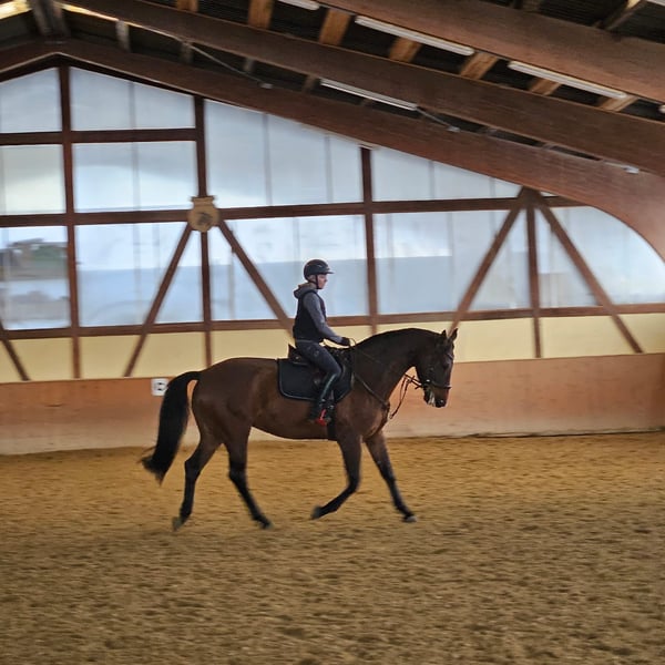 Zum Verkauf steht meine Stute, die derzeit freizeitmäßig geritten wird, aber definitiv Potenzial für mehr mitbringt. Leider scheitert es bei uns nicht am Pferd, sondern am Piloten. Sie zeigt sehr gutes Talent im Springen und verfügt über ordentliche Grundgangarten. Mit der richtigen Förderung und einem sicheren Reiter kann ich sie mir gut im sportlichen Bereich vorstellen. Im Umgang ist sie brav, freundlich und unkompliziert. Beim Reiten ist sie jedoch KEIN Anfängerpferd. Sie braucht eine klare, ruhige und sichere Führung, die ihr Sicherheit gibt. Wenn sie diese bekommt, arbeitet sie gut mit. Genau das kann ich ihr leider nicht ausreichend bieten, weshalb ich schweren Herzens ein neues Zuhause für sie suche. Sie geht auch ins Gelände, ist dort brav, jedoch aufmerksam und wachsam. Ich wünsche mir für sie einen erfahrenen Reiter, der ihr Potenzial erkennt, sie fair fördert und ihr die nötige Sicherheit vermittelt. Seit sie bei mir ist war sie nie krank, läuft schon immer Barhuf und ist regelmäßig geimpft und entwurmt. Bei ernsthaftem Interesse freue ich mich über eine Nachricht. Weitere Infos, Videos und Bilder gerne auf Anfrage.