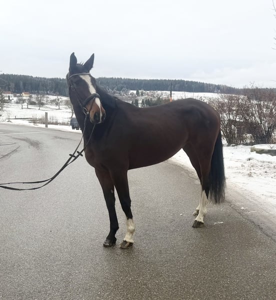 Candy is a strikingly beautiful mare born in 2020, sired by Cannon. Standing approximately 16.1 hh, this modern-bred horse is a real pleasure to ride. She is incredibly well-behaved and straightforward in handling. Under saddle, she responds well to aids and has plenty of go. Especially jumping is a lot of fun for Candy. This horse will bring joy to any ambitious leisure rider as well as to competitive riders. Further information and videos are available via WhatsApp or by phone at: +43 660 3632373 Location: Pelmberg 15 / Upper Austria Viewing and trial riding are gladly available by appointment! Transportation of the horse can also be arranged.